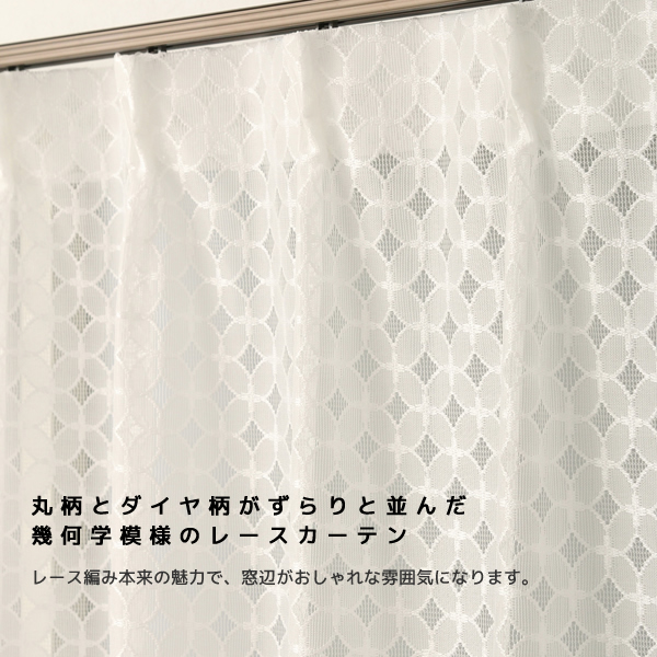 - > 丸とダイヤ柄が並んだ幾何学模様のレースカーテン 4265 イージーオーダー 1枚入り【受注生産A】