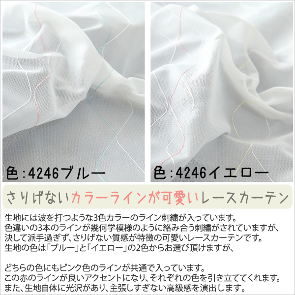 さりげないカラーラインがカワイイレースカーテン