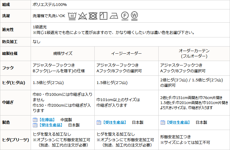 イージーオーダーよりもオーダーカーテン(フルオーダー)がおすすめです。 | ||||