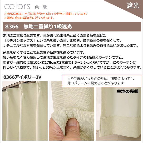 ※同じ1級遮光でも、一般的には薄い色ほど光を通しやすくなっています。 少しでも部屋をより暗くしたい場合は、比較的濃い色をお選び下さい。