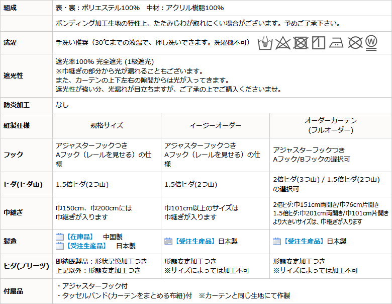 既製品が欠品中の場合や、受注生産品に形態安定加工をご希望の場合などにご検討下さい。 ※在庫品に形態安定加工も承っており受注生産品+加工よりも価格はお安くなりますが、元のたたみじわが残ることがあります。 | ||||