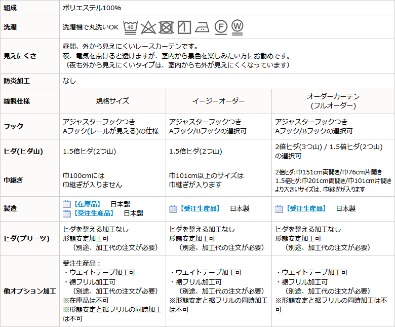 既製品が欠品中の場合や、受注生産品に形態安定加工をご希望の場合などにご検討下さい。 ※在庫品に形態安定加工も承っており受注生産品+加工よりも価格はお安くなりますが、元のたたみじわが残ることがあります。 | ||||