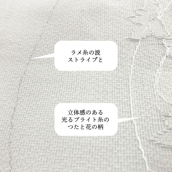 レースカーテン ミラー つた柄 + ラメストライプ 昼間外から見えにくい UVカット 日本製 おしゃれ 4234オフホワイト オーダーカーテン仕様 1窓単位【受注生産A】