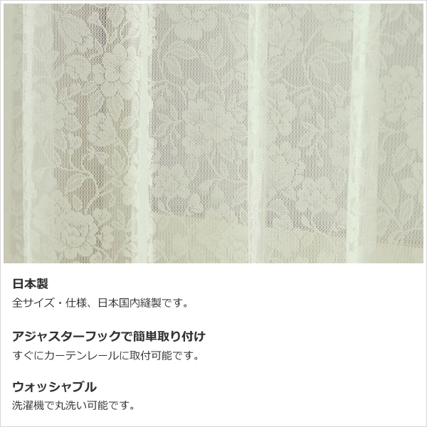 夏は涼しく 冬はあったか 一般的なレース生地と比較して、夏は約2倍 冬は約5倍の断熱効果 お部屋の冷暖房効果をアップさせる 高密度編み 断熱・保温・省エネレースカーテン 当店のベストセラー・ロン…