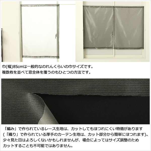 巾85cmは一般的なのれんくらいの巾サイズです。複数枚を並べて窓全体を覆うのもひとつの方法です。