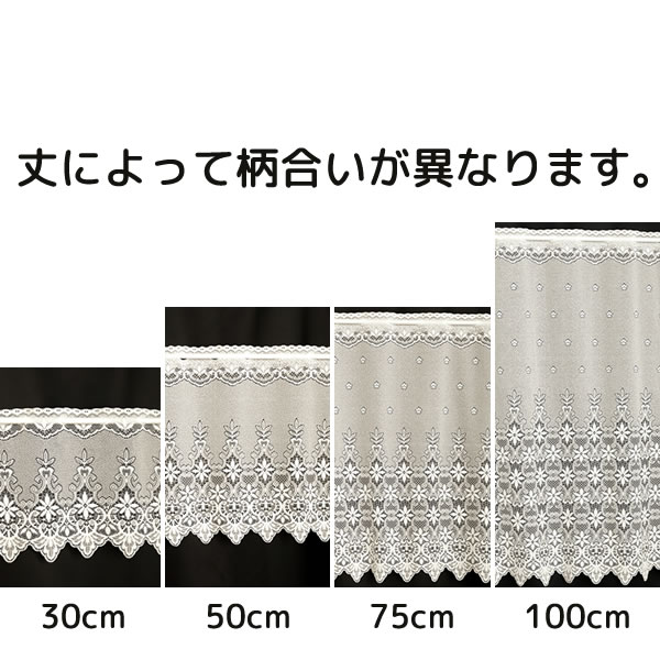 ★カフェカーテン レース 花柄 おしゃれ 3532オフホワイト LS 巾(幅)150cm×高さ30・50・75・100cm丈 1枚入【在庫品】メール便可(1枚まで)