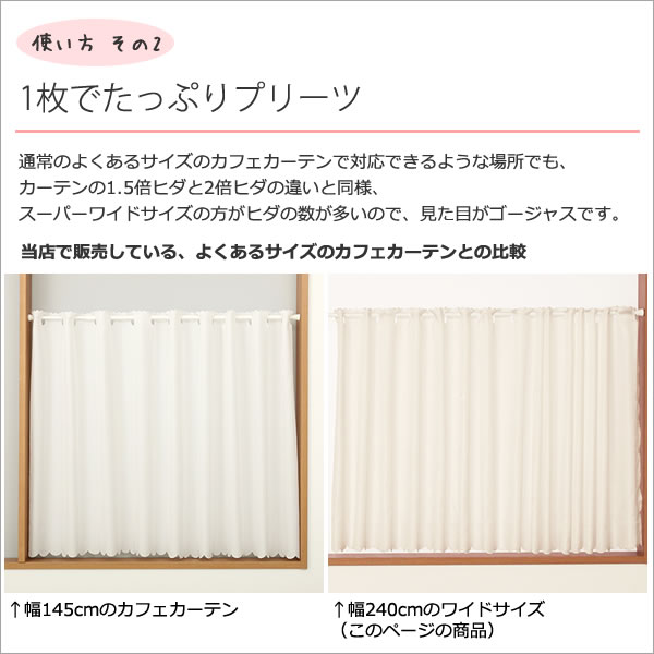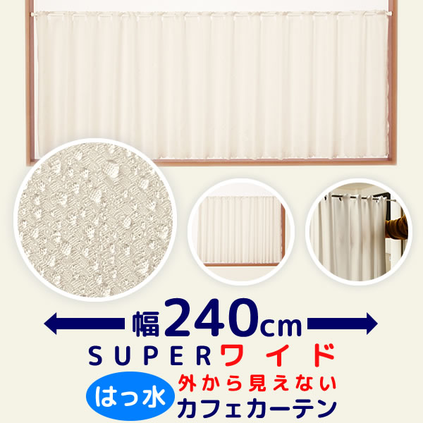 ★送料無料 カフェカーテン はっ水加工 幅240cm スーパーワイドサイズ 外から見えない お風呂場 浴室 目隠し 遮像 横長 幅広 おしゃれ 巾(幅)240×高さ50・60・70・80・90・100cm丈 1枚入 大きい幅【在庫品】メール便可(1枚まで) [hassui-swidecafe]
