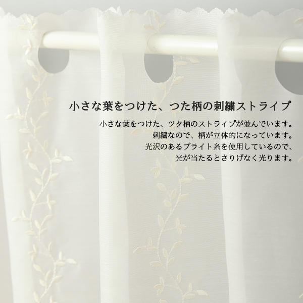 ★カフェカーテン 2494刺繍ストライプオフホワイト 良く透けるボイル生地 小枝 ボタニカル 巾(幅)145×高さ45・70cm丈 1枚入【在庫品】メール便可(1枚まで)