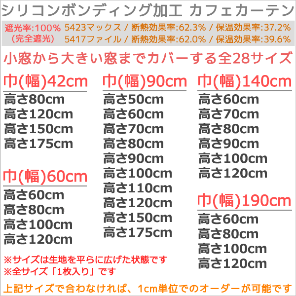 ★送料無料 カフェカーテン 遮光 1級 遮光率100% 完全遮光 無地 断熱 遮熱 保温 防寒 シリコンボンディング加工 5423 ファイル 5417 アイボリー 巾(幅)42 巾(幅)60 巾(幅)90 巾(幅)140 巾(幅)190 1枚入【在庫品】