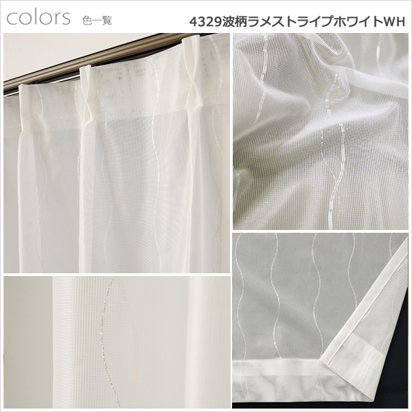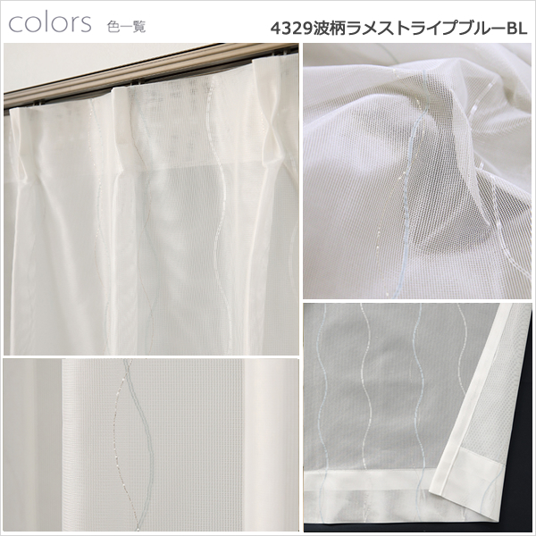 レースカーテン ミラー 昼間外から見えにくい 波柄ラメストライプ 4329 ホワイト ブルー「トレミー」 イージーオーダー 1枚入【受注生産A】 [432900]