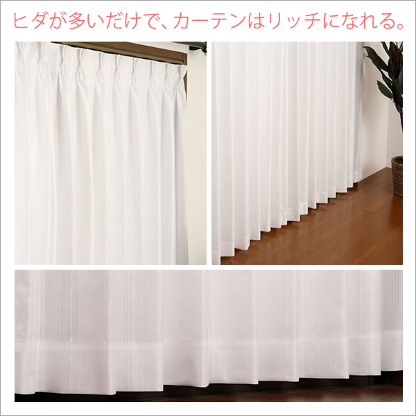 ヒダを整える加工なし 形態安定加工可 (別途、加工代の注文が必要) ※オーダーカーテンは サイズによっては加工不可 |