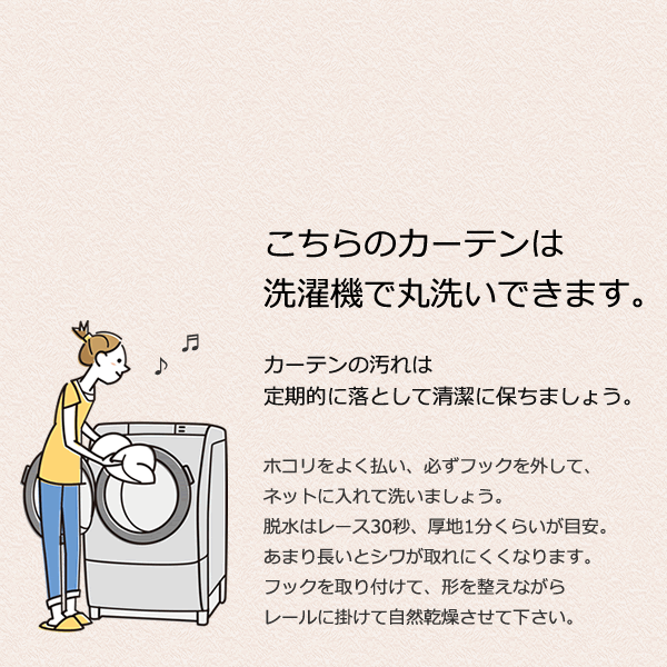 | 付属品 | ・アジャスターフック付 ・タッセルバンド(カーテンをまとめる布紐)付 ※カーテンと同じ生地にて作製 |