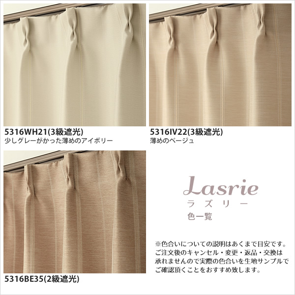 5316WH21、5316IV22…3級遮光 5316BE35、5316BR32、5316LB14、5316GY65、5316GN85…2級遮光 5316NB12、5316DG64…1級遮光 |