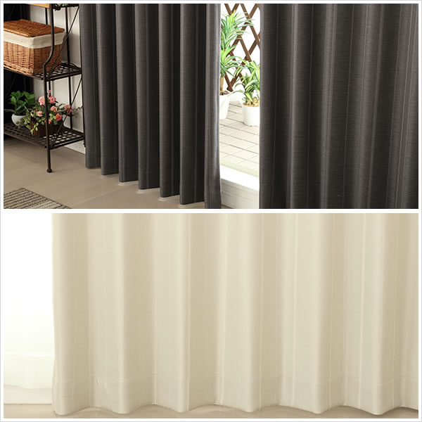 ↓こちらの図の厚地カーテンのように、レールの下にぶら下がるように掛かる仕様です。