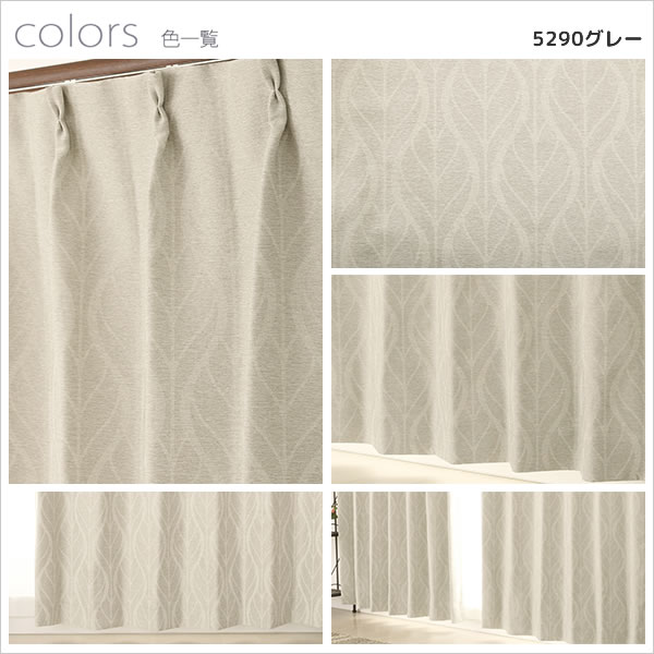 遮光カーテン 遮光2級 リーフ柄 葉っぱ柄 北欧調 プリント おしゃれ 形状記憶加工 5290 規格サイズ 【受注生産A】