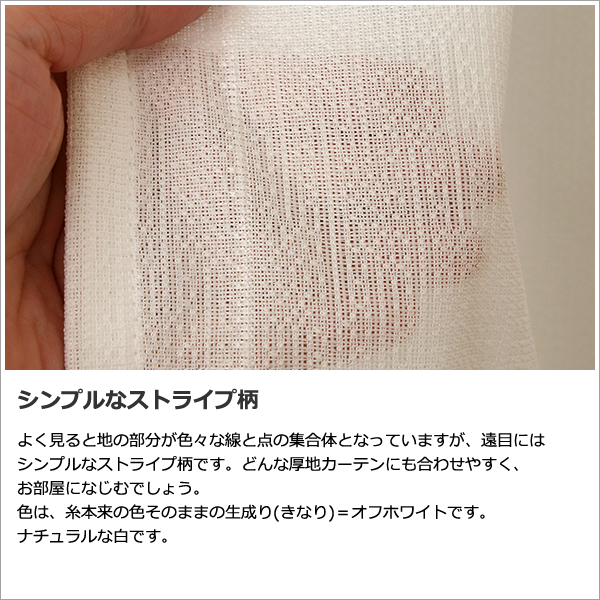| 付属品 | ・アジャスターフック付 ※タッセルバンド無し(レースカーテンには、纏めるヒモ等をお付けしていません) 別売りのタッセルもあります |