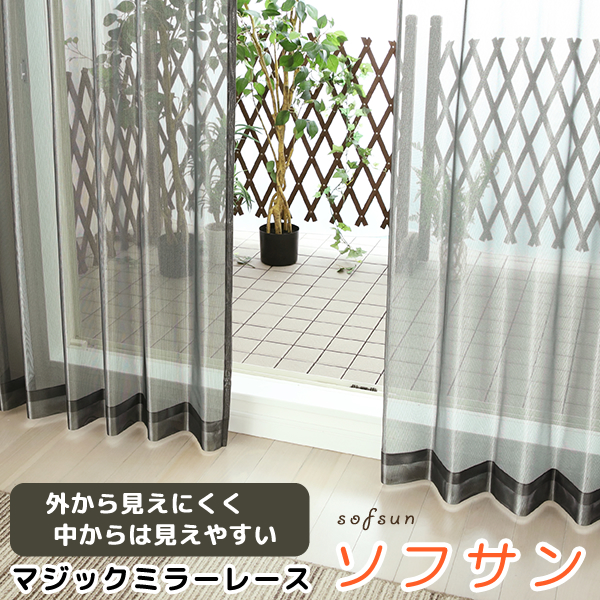 レースカーテン ミラー マジックミラーレース 昼間外から見えにくくお部屋からは外が見えやすい 遮熱「ソフサン」4361ブラック 黒 イージーオーダー 1枚入り【受注生産A】