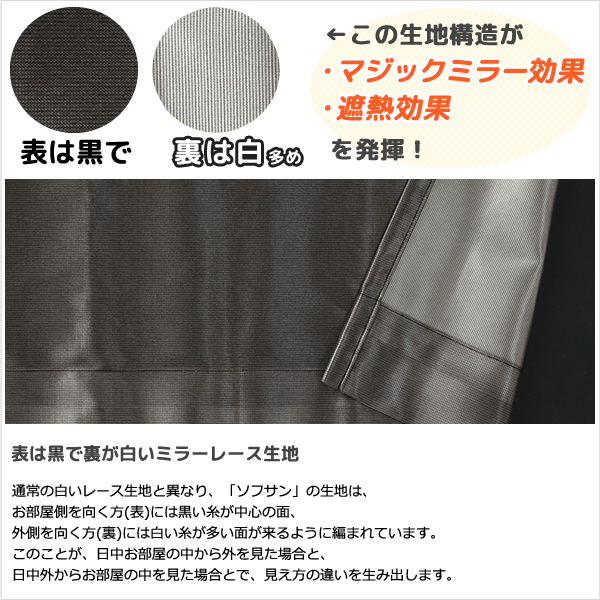 表が黒で裏が白い生地のミラーレースカーテン 遮熱効果も