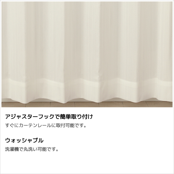 | 付属品 | ・アジャスターフック付 ※タッセルバンド無し(レースカーテンには、纏めるヒモ等をお付けしていません) 別売りのタッセルもあります |