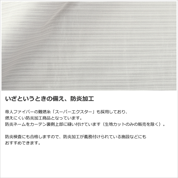 について | 防炎加工つき ※カーテンに防炎ネームタグの縫い付けあり | ||
