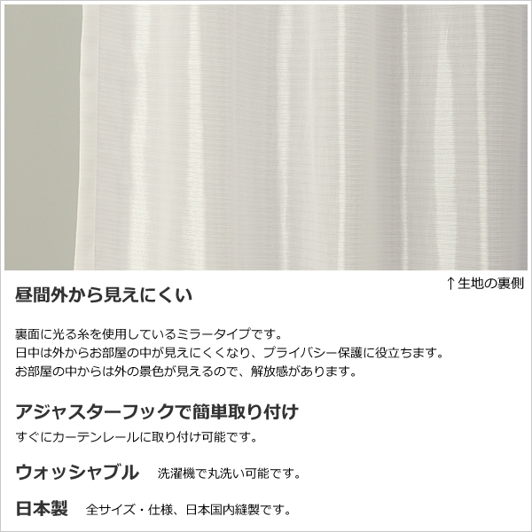また、透け感があるミラー生地(昼間外から見えにくい)は、