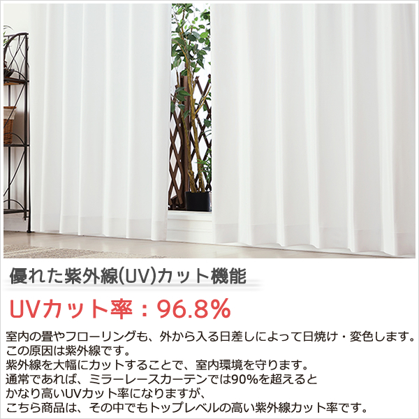 通常であれば、ミラーレースカーテンでは90%を超えるとかなり高いUVカット率になりますが、