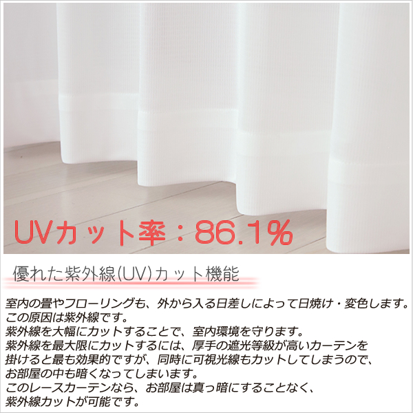 このレースカーテンなら、お部屋は真っ暗にすることなく、紫外線カットが可能です。