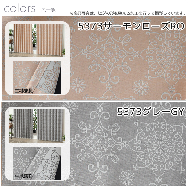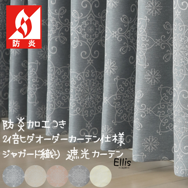 2倍ヒダ 防炎加工つきジャガード織り遮光カーテン5373「エリス」 オーダーカーテン仕様 1窓単位【受注生産A】