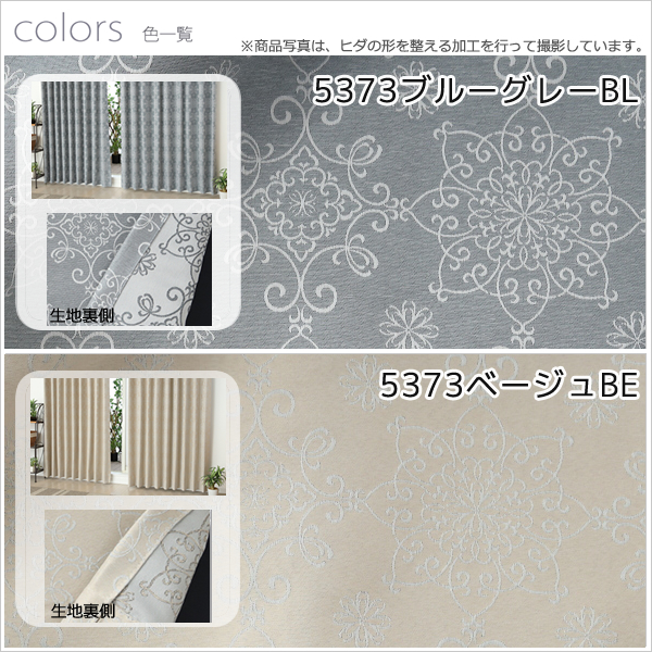 2倍ヒダ 防炎加工つきジャガード織り遮光カーテン5373「エリス」 オーダーカーテン仕様 1窓単位【受注生産A】 [537300]