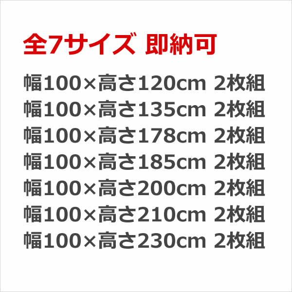 幅100×高さ120cm 2枚組 幅100×高さ135cm 2枚組 幅100×高さ178cm 2枚組 幅100×高さ185cm 2枚組 幅100×高さ200cm 2枚組 幅100×高さ210cm 2枚組 幅100×高さ230cm 2枚組 アウトレット 送料無料 2,580円〜3,980円 即納可 発送予定日はこちらです。→ |