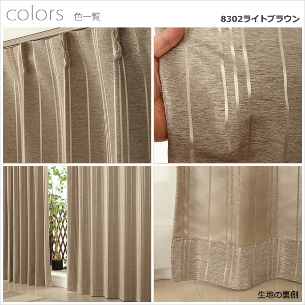 ★送料無料 遮光カーテン アウトレット 形状記憶加工 輝く光沢ストライプ ずっしり二重織り 遮光2級 遮光3級 8302 おしゃれ 断熱 保温 既製品 幅100cm2枚組 幅100センチ【在庫品】