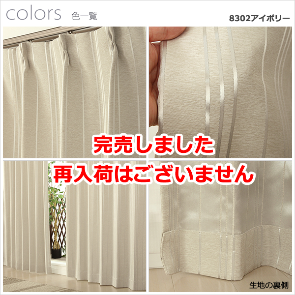 | 8302アイボリーIV(3級遮光) | 8302グレーGY(3級遮光) | 8302ライトブラウンBR(2級遮光) |