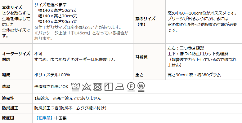 防炎加工つきで燃えにくいので、火元に近い台所の小窓にも最適です。