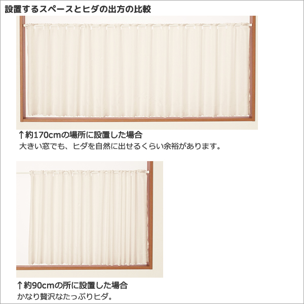 | 大きい窓でも、ヒダを自然に出せるくらい余裕があります。 | かなり贅沢なたっぷりヒダ。生地に角度がつく ので、外からの見えにくさも、さらにアップ。 |