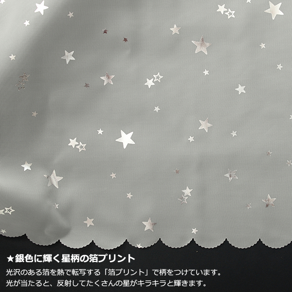 よく透けるプレーンボイル生地に箔プリントをしました。お子様のお部屋にもおすすめです。
