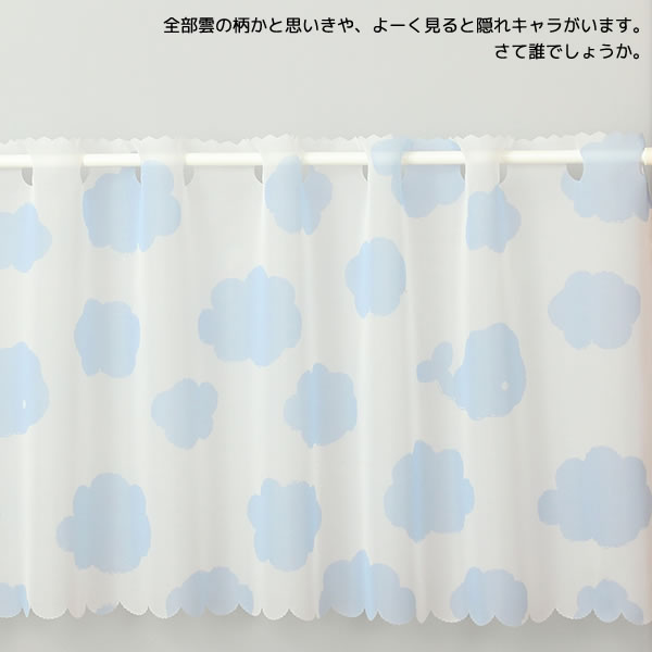 ★カフェカーテン 雲柄プリント 水色 良く透けるボイル生地 2493雲柄プリントBL 子供部屋 巾(幅)145×高さ45・70cm丈 1枚入【在庫品】メール便可(1枚まで) [2493cafe]