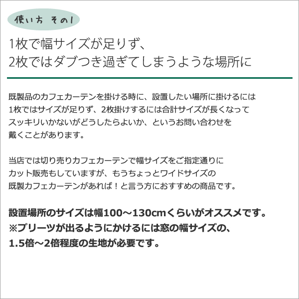 もうちょっとワイドサイズの既製カフェカーテンがあれば!と言う方におすすめの商品です。