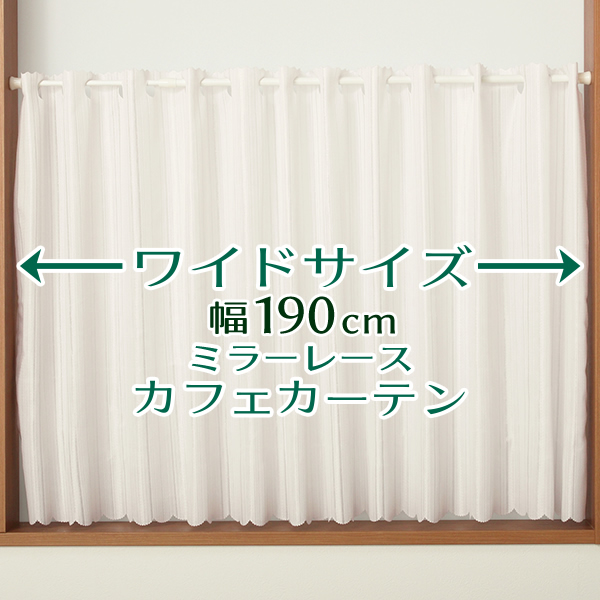 ★送料無料 カフェカーテン レース ワイドサイズ 横長 幅広 幅190cm ミラーレース 昼間外から見えにくい おしゃれ 巾(幅)190×高さ50・70・90cm丈 1枚入【在庫品】大きい幅 メール便可(1枚まで) [widecafehiru]