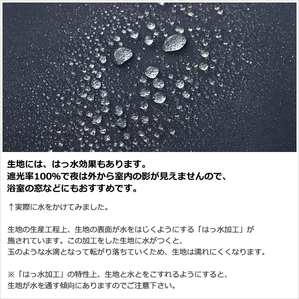 生地の生産工程上、生地の表面が水をはじくようにする「はっ水加工」が施されています。