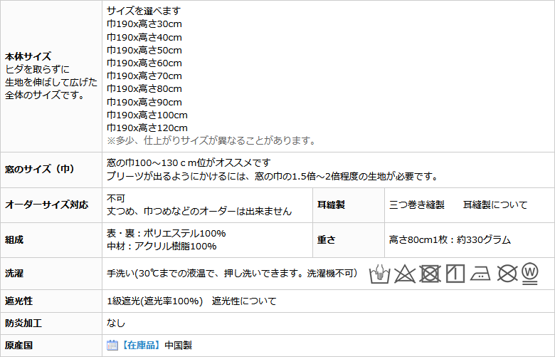 幅190x丈30・40・50・60・70・80・90・100・120cm