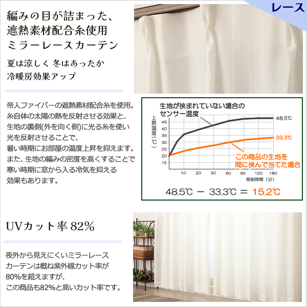夜外から見えにくいミラーレースカーテンは概ね紫外線カット率が80%を超えますが、