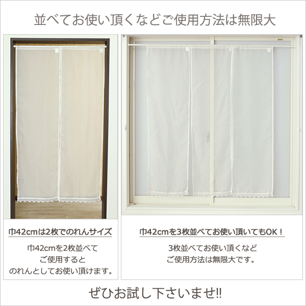| 巾42cmを2枚並べてご使用すると のれんとしてお使い頂けます。 |