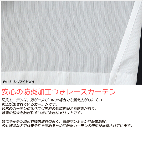 継ぎ目が入らない2倍ヒダレースカーテン防炎加工4343