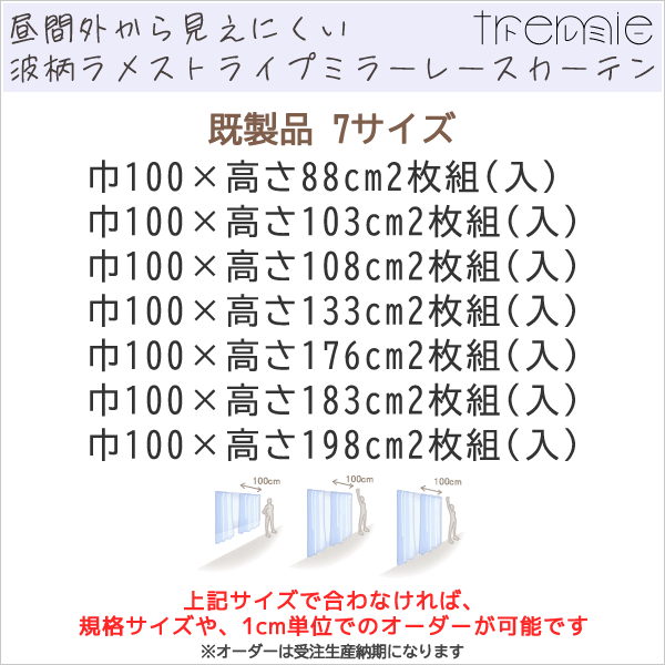 ★送料無料 即納サービスサイズ レースカーテン ミラー 昼間外から見えにくい 波柄ラメストライプ 4329 ホワイト ブルー「トレミー」 既製品 巾(幅)100cm2枚組(入) 【在庫品】 17l [432900]